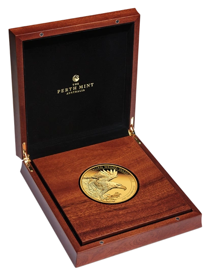 Złota moneta kolekcjonerska "Orzeł Australijski 1000 gramów Złota 2020 Proof" to unikat na rynku metali szlachetnych. Jest to produkt, który jest szczególnie polecany kolekcjonerom, chcącym poszerzyć swoje unikalne portfolio. Moneta z roku 2020 jest bita lustrzanym stemplem z czystego złota próby 9999, o wadze 1000 gramów. Za produkcję kilogramowego orła odpowiada renomowana mennica The Perth Mint. Ponadto, ten niezwykły produkt posiada gwarancję rządu Australii oraz stanowi pełnoprawny środek płatniczy na terenie kraju emitenta.
