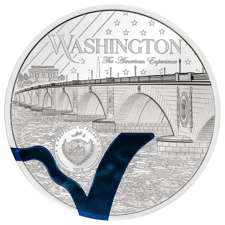 Palau: Tiffany Art Metropolis - Washington kolorowany 1000 gramów Srebra 2025 Proof