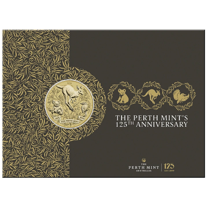 Perth Mint 125. rocznica powstania Brąz Aluminiowy 2024 (moneta w karcie). Mennica została założony 20 czerwca 1899 roku, w czasie rozkwitu złotego boomu w Zachodniej Australii. Poprzez proces rafinacji złota i wybicie 106 milionów suwerenów w ciągu kolejnych trzech dekad, znacząco przyczynił się do szybkiego rozwoju gospodarczego tego regionu Australii. Od tamtego przełomowego momentu, Australijski Kangur, wcześniej znany jako Australijski Nugget, zdobył ogólnoświatowe uznanie i osiągnął sukces. Kolejne dodatki do oficjalnego australijskiego programu monet bulionowych to Australijski Kookaburra i Australijski Koala, które cieszą się dużym zainteresowaniem ze strony inwestorów i kolekcjonerów