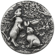Srebrna moneta z wizerunkiem dwóch królików, została wybita w próbie kruszcu – Ag.9999, w standardzie antiqued. Ważnym elementem jest ograniczony nakład monety, liczący zaledwie 1888 sztuk. Każda moneta posiada numerowany certyfikat autentyczności oraz oryginalne opakowanie.