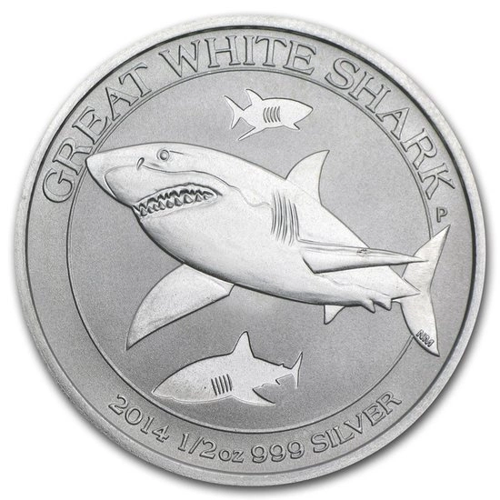 Srebrna moneta Rekin Ludojad (Great White Shark) to pierwsza moneta z serii Rekiny. Seria "Rekiny" skupia się na najgroźniejszych wodnych drapieżnikach. Srebrny żarłacz jest bity z czystego kruszcu próby 999, o wadze 1/2 uncji trojańskiej oraz średnicy mierzącej 32 mm.