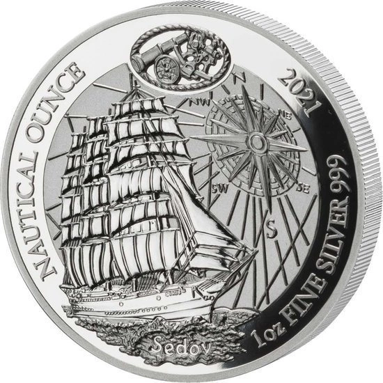Rwanda: Nautical Ounce - Sedov 1 uncja Srebra 2021 Proof to unikany produkt przedstawiający największy, rosyjski czteromasztowiec szkolny świata. Moneta bita jest z czystego srebra próby Ag.999, o wadze jednej uncji trojańskiej oraz w standardzie proof.