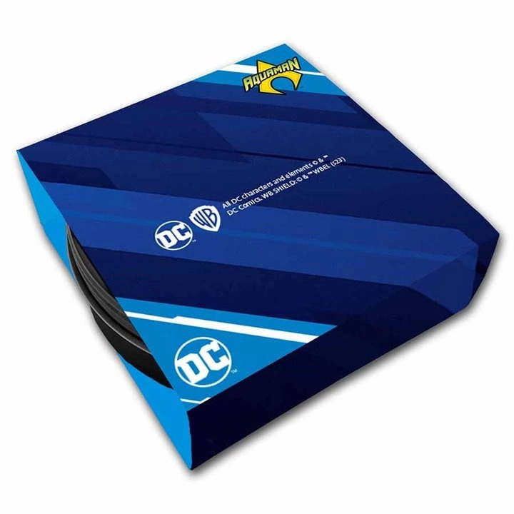 Na rewersie widnieje postać kultowego superbohatera - Aquaman'a. Dodatkowo, po stronie rewersu została zamieszczona informacja o wadze i czystości złota oraz napis "AQUAMAN".