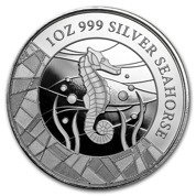 Na rewersie widnieje artystyczny wizerunek konika morskiego, napis "SEAHORSE" oraz informacja o wadze i czystości kruszcu.