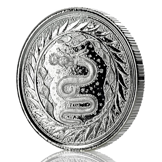Moneta Samoa: Serpent of Milan 1/2 uncji Srebra 2020 to wyjątkowy, bulionowy produkt, który ukazuje herb Viscontich. Herb prezentuje węża, który trzyma w paszczy mężczyznę.