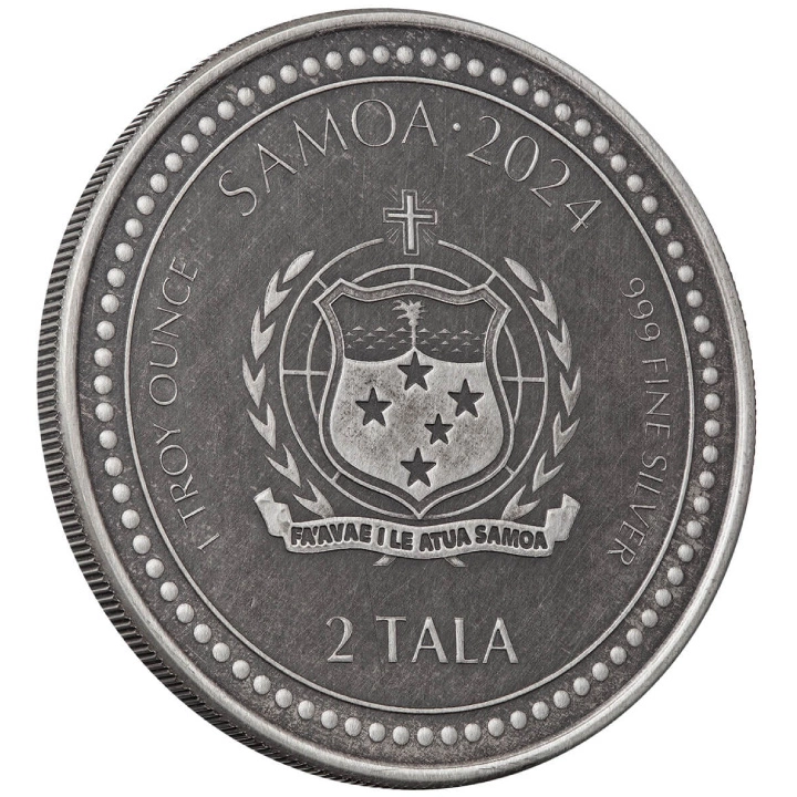 Samoa: Year of the Dragon 1 uncja Srebra 2024 Antiqued Coin to egzemplarz, który pochodzi z serii "Lunar New Year", inspirowany chińskim kalendarzem księżycowym. Rok 2024 należy do smoka. Jako jedno z najbardziej czczonych i kultowych stworzeń w chińskiej kulturze, uważa się, że smok symbolizuje siłę, szczęście i dobrobyt.