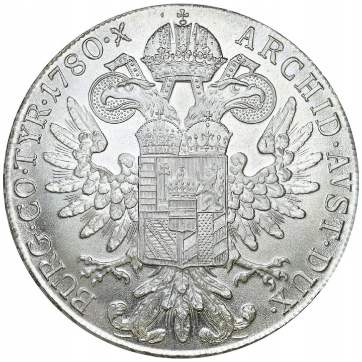 Rewers monety zdobi herb Habsburgów, prezentując orła o dwóch głowach i ogonach. Wokół niego można zauważyć napis „"ARCHID. AVST. DUX BURG. CO. TYR. 1780 X ".