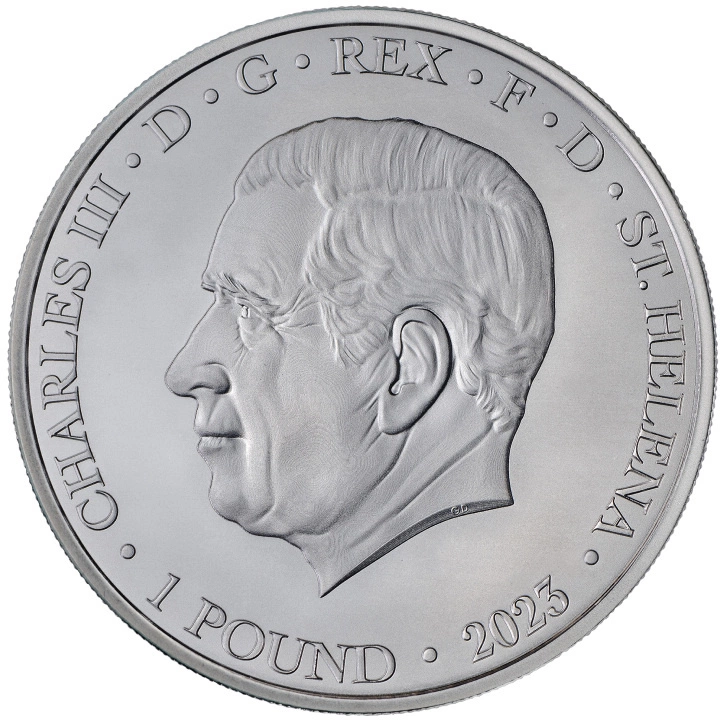 Awers srebrnej monety zdobi wizerunek Króla Wielkiej Brytanii Karola III, napis "CHARLES III∙D∙G∙REX∙F∙D" oraz "ST. HELENA" Na awersie znajduje się także informacja o wartości nominalnej i roku bicia monety. Projektantem awersu był Glyn Davies.