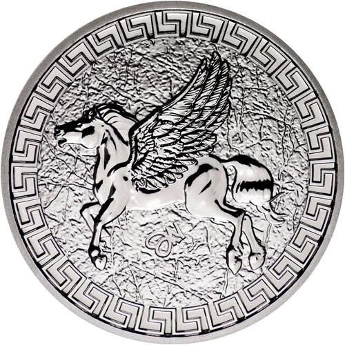 Moneta St. Helena Pegasus - "Jennie Norris" 1 uncja Srebra 2022 to walor, który został zaprojektowany przez designerkę Jennie Norris w imieniu Wyspy Świętej Heleny. Pegaz w mitologii greckiej to skrzydlaty koń.