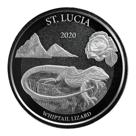 St. Lucia "Whiptail Lizard" 1 uncja Srebra 2020 to srebrna moneta, należąca do programu kolekcjonerskiego EC8 (Eastern Caribbean Coin Program). EC8 to ośmiomonetowa seria emitowana przez takie wyspy jak Antigua i Barbuda, Dominika, Grenada, Saint Kitts i Nevis, Saint Lucia, Saint Vincent i Grenadyny, Anguilla czy Montserrat (każda z wymienionych wysp jest członkiem Wschodniokaraibskiego Banku Centralnego). Każda odsłona EC8 reprezentuje inną wyspę i ma swój indywidualny wizerunek.