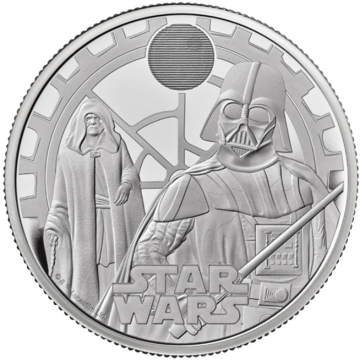 Star Wars: Darth Vader & Emperor Palpatine 1 uncja Srebra 2023 Proof to druga moneta z serii "Star Wars". Walor jest numizmatycznym unikatem dla fanów ikonicznej sagi kosmicznej. Gwiezdne Wojny to fikcyjne uniwersum stworzone przez George'a Lucasa. Pierwszy film miał premierę w 1977 roku. Produkt prezentuje Darth Vader & Emperor Palpatine - dwie kluczowe postacie, które odgrywają kluczową rolę w sadze Star Wars.