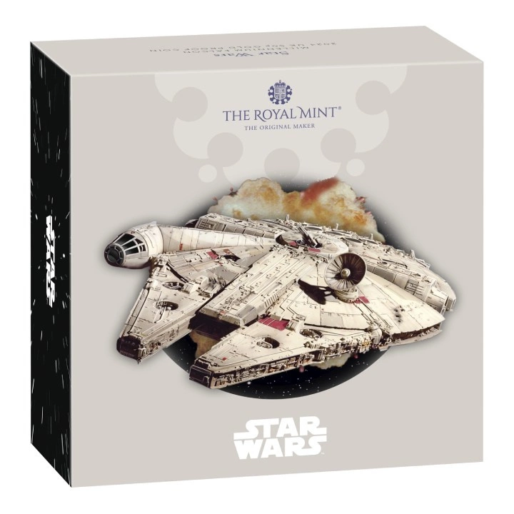 Star Wars: Millennium Falcon 50p Złoto 2024 Proof to piąta moneta z serii "Star Wars". Walor jest numizmatycznym unikatem dla fanów ikonicznej sagi kosmicznej. Gwiezdne Wojny to fikcyjne uniwersum stworzone przez George'a Lucasa. Pierwszy film miał premierę w 1977 roku. Produkt prezentuje statek kosmiczny - Sokół Millennium, który jest jedną z najszybszych jednostek w filmowej galaktyce.