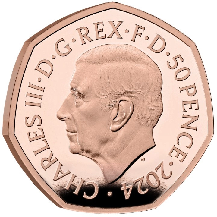 Awers ukazuje podobiznę króla Wielkiej Brytanii Karola III oraz nominał i rok, według projektu Martin'a Jennings'a.