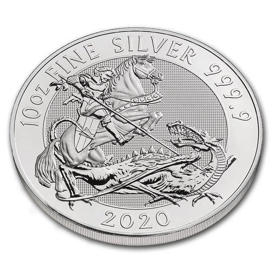 Srebrna moneta „ Św. Jerzy i Smok 10 Uncji Srebra 2020” to trzecie wydanie zyskującej na popularności serii srebrnych monet bulionowych – Św Jezry i Smok. Egzemplarz z roku 2020 został wyprodukowany z czystego srebra próby 9999, o wadzę 10 uncji. Jego emitentem jest akredytowana mennica The Royal Mint.
