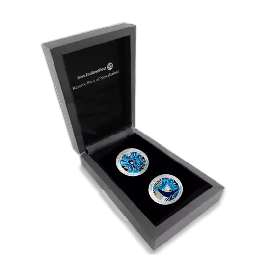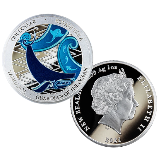 Tangaroa Strażnik Oceanu: Zestaw 2 monet kolorowanych 2 uncje Srebra 2021 to zestaw, który przedstawia Tangaroa, który w mitologii Maorysów był strażnikiem wszystkich oceanów, wód oraz stworzeń morskich. Jest to pierwszy zestaw poświęcony mitologicznym, maoryskim postaciom. Monety posiadają nominał o wartości $1. Zestaw posiada limitowany nakład, liczący jedyne 400 sztuk. Zestaw ten będzie znakomitym uzupełnieniem każdej kolekcji.