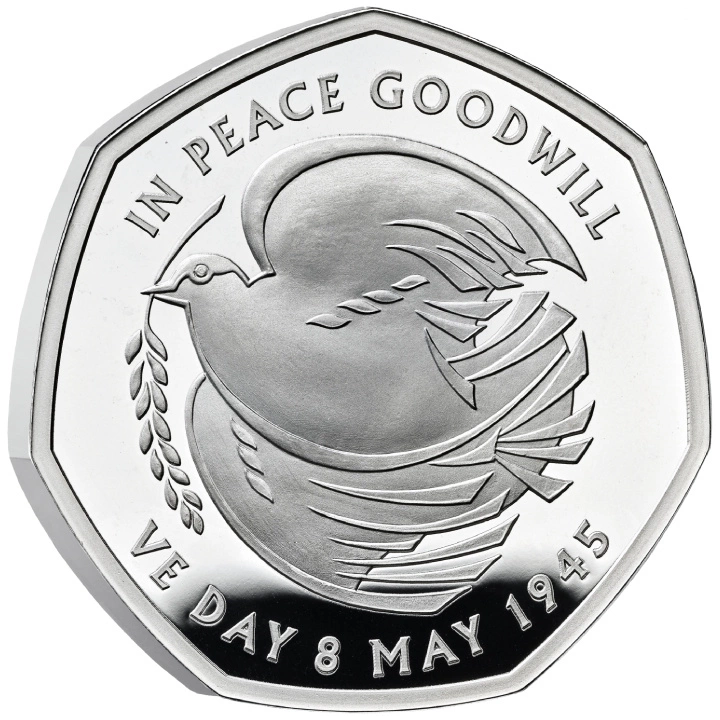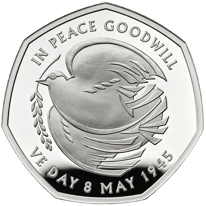 The 80th Anniversary of VE Day 50p Silver 2025 Proof to wyjątkowa srebrna moneta, wybita z okazji 80. rocznicy zakończenia II wojny światowej w Europie. VE Day – Dzień Zwycięstwa w Europie, obchodzony 8 maja 1945 roku – był momentem radości, refleksji i dumy narodowej, który zakończył niemal sześć lat konfliktu, cierpienia i niepewności. Ta pamiątkowa emisja oddaje hołd bohaterom tamtych dni oraz niesie przesłanie pokoju i pojednania.