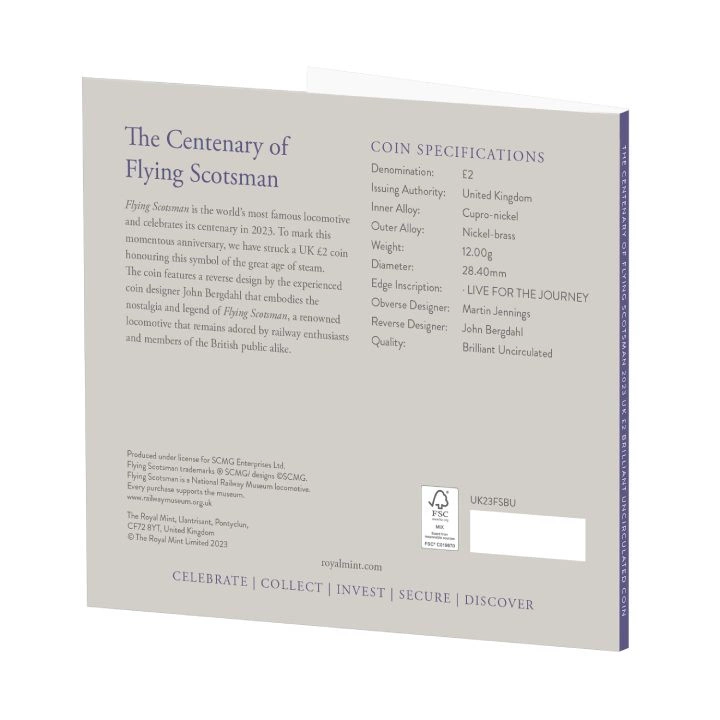 The Centenary of the Flying Scotsman £2 Miedzionikiel 2023 to interesujący produkt, który świętuje 100-lecie w 2023 roku. Latający Szkot jest często okrzyknięty najsłynniejszą lokomotywą parową na świecie. Po raz pierwszy wprowadzony do kolei w 1923 roku.
