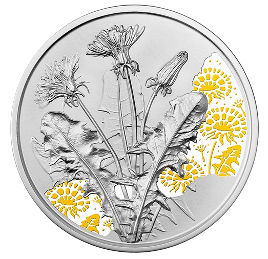 Moneta The Dandelion kolorowany 10 Euro Srebro 2022 Proof to walor pochodzący z serii The language of flowers, o nominale 10 Euro. Mniszek lekarski jest drugą monetą z serii. Następnymi kwiatami z serii będą: nagietek, niezapominajka, rumianek, piwonia i fiołek.