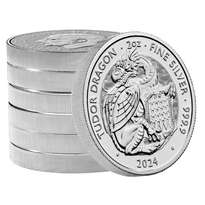 The Royal Tudor Beasts: The Tudor Dragon 2 uncje Srebra 2024 to piąty egzemplarz z drugiej serii The Royal Tudor Beasts. Moneta kolekcjonerska, ukazuje wizerunek jednego z dziesięciu heraldycznych Królewskich Bestii - Smoka Tudorów. Smoki były prominentnymi symbolami w okresie średniowiecza i były wykorzystywane przez Owena Tudora, pradziadka Henryka VIII. Henryk VIII uważał więc ten symbol za powiązanie z Cadwaladrem, królem Gwynedd w Walii, panującym około 655-682 roku. Według współczesnych rękopisów, Smok Tudora miał czerwoną głowę, grzbiet i skrzydła oraz złoty spód.