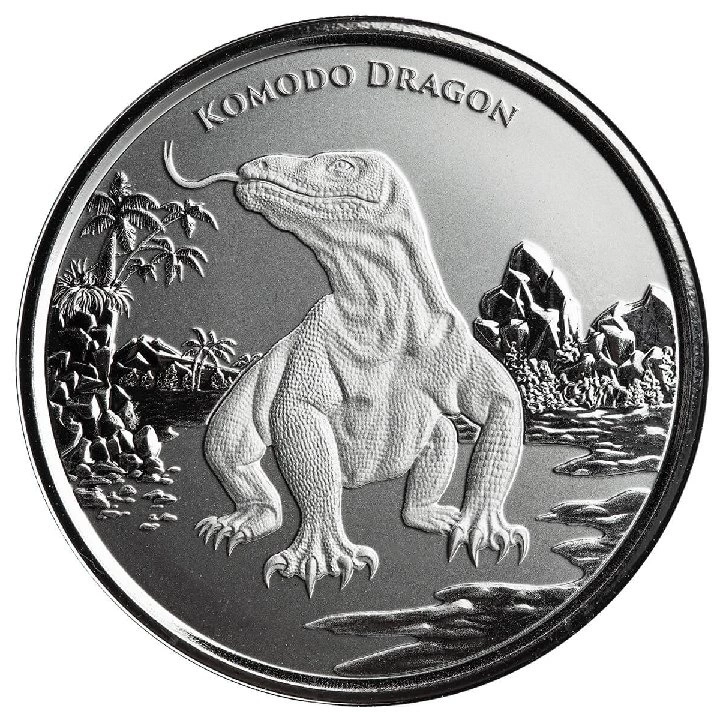 Rewers przedstawia Warana z Komodo na tle natury wyspy. Na rewersie znajduje się także napis "KOMODO DRAGON".