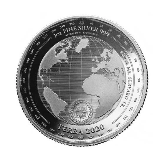 Rewers przedstawia kulę ziemską oraz wagę i czystość kruszcu, a także napis "TERRA 2020".