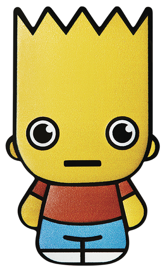 Rewers srebrnej monety przedstawia kolorowaną postać Bart'a Simpsona.