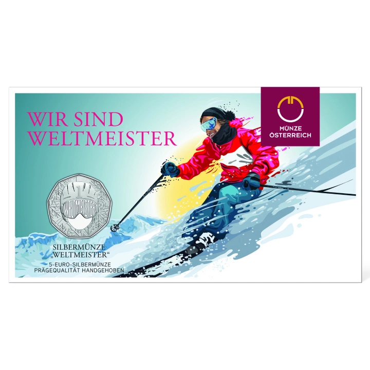 World Champion 5 Euro Srebro 2024 to Idealny prezent dla miłośników sportów zimowych, szczególnie narciarstwa.