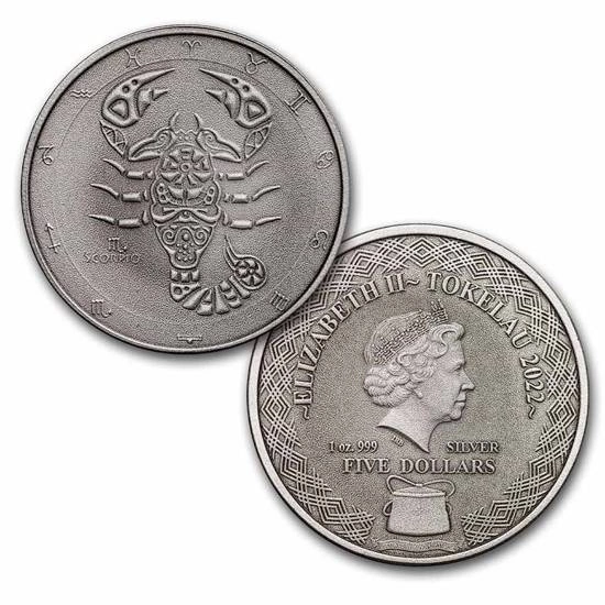 Zestaw 12 monet Tokelau: Zodiac Series 12 x 1 uncja Srebra 2022 Antique Coins to ciekawa propozycja inwestycyjna pochodząca z serii Zodiac Series. Zestaw posiada 12 monet, a każda moneta przedstawia inny symbol znaku zodiaku po stronie rewersu, do których należy: baran, byk, bliźnięta, rak, lew, panna, waga, skorpion, strzelec, koziorożec, wodnik i ryby.