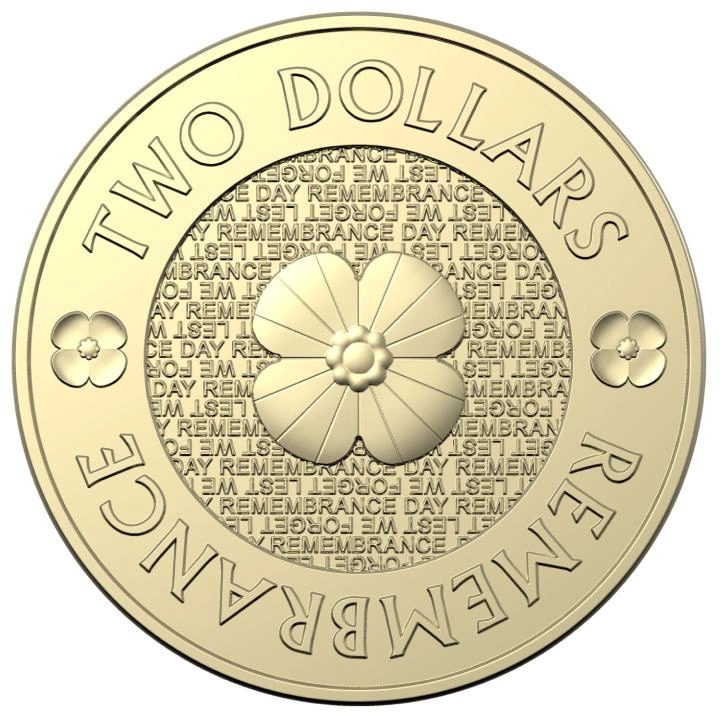 Rewersy monet ukazują kolorowane pamiątkowe projekty, które widniały na rewersie australijskich monet dwudolarowych.