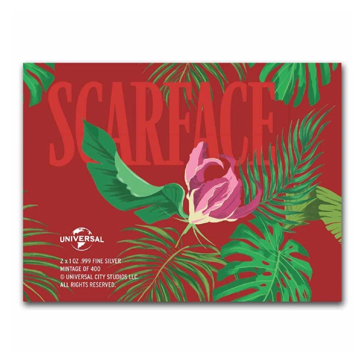 Zestaw 2 monet Czad: Człowiek z blizną "Miami" - 40. rocznica filmu kolorowany 2x1 uncja Srebra 2023 to srebrny egzemplarz, który może wzbogacić kolekcjonersko-inwestycyjne portfolio kupca. Moneta świętuje i upamiętnia 40. rocznicę filmu "Człowiek z blizną". Jest to amerykański dramat kryminalny z 1983 roku wyreżyserowany przez Briana De Palmę i napisany przez Olivera Stone'a.