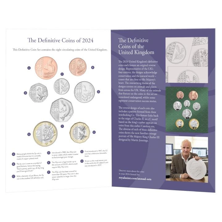 Zestaw 8 monet Miedzionikiel Wielka Brytania Definitive 2024