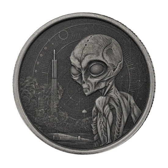 Monety przedstawiają istoty pozaziemskie - UFO. Warto dodać, że walory z serii Ghana Alien posiadają także elementy fluorescencyjne, które pod wpływem UV, świecą w nocy. Dzięki temu produkty oddają prawdziwy charakter istot kosmicznych. Monety polecane są dla entuzjastów życia pozaziemskiego i fascynatów UFO.