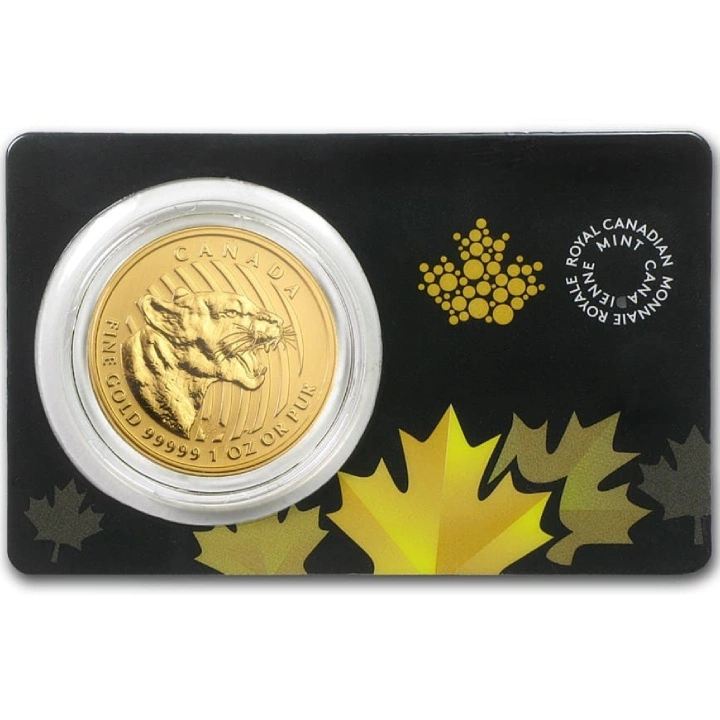 Druga moneta z serii Zew Natury (Call of the wild) to egzemplarz, który przedstawia jednego z najpiękniejszych drapieżników zamieszkujących Kanadę - Pumę. Złota moneta z wizerunkiem warczącej pumy o wadze 1 uncji złota i próbie 99999 Au to szczególnie dobry wybór inwestycyjny.