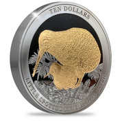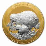 Kiwi pozłacany/ruten 2 uncje Srebra 2020 Limited Edition Proof High Relief